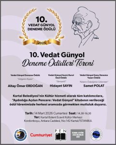 10. Vedat Günyol adına düzenlenen Deneme Ödül Töreni; 14 Mart 2026 Cumartesi günü saat 15.30’da Kartal Bülent Ecevit Kültür Merkezi’nde gerçekleştirilmiş oldu…