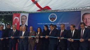 Nazilli’de 1994’den bu yana hizmet veren ‘Nazilli Erzurumlular Derneği’nin yeni hizmet binası görkemli bir şekilde açıldı. Çok yoğun katılımın olduğu ve Erzurum Tortumlu olan Milli Eğitim Bankanı Yusuf Tekin’in de katıldığı açılış törenine Aydın Valisi Yakup Canbolat, AK Parti Aydın milletvekilleri Ömer Özmen, Seda Sarıbaş ve Mustafa Savaş, Aydın Büyükşehir Belediye Başkanı Özlem Çerçioğlu ile Erzurum Büyükşehir Belediye Başkanı Mehmet Sekmen, Nazilli Kaymakamı Huriye Küpeli Kan, AK Parti Aydın İl Başkanı Mehmet Erdem, Erzurumlular Ege Federasyonu Başkanı Zakir Salmaoğlu ve çok sayıda Erzurumlu katılım sağladılar.