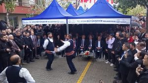 Hizmet binasının açılışı saygı duruşu ve İstiklal Marşının okunmasıyla başladı. Erzurum yöresine ait halk oyunları gösterisiyle devam etti. Açılışta ilk konuşmayı yapan Nazilli Erzurumlular Dernek Başkanı Yüksel Karabıyık yaparken kendilerini yalnız bırakmayan katılımcılara teşekkür etti. Ardından kürsüye Erzurumlular Ege Federasyonu Başkanı Zakir Salmaoğlu çıkarak teşekkür konuşması yaptı. Nazilli’ye büyük bir sevinç ile ve koşarak geldiğini belirtti.