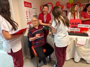 Yapılan açıklamalarda, “Kalp sağlığını korumak için dengeli beslenme, düzenli fiziksel aktivite, sigaradan uzak durma, stres yönetimi ve periyodik sağlık kontrolleri büyük önem taşımaktadır. Erken tanı ve doğru yönlendirme ile birçok kalp hastalığının önüne geçmek mümkündür. 12–18 Nisan Kalp Sağlığı Haftası dolayısıyla hastanemiz poliklinik girişinde kurulan stantta, hastalarımız, hasta yakınlarımız ve ziyaretçilerimizin yoğun ilgisiyle farkındalık çalışması gerçekleştirildi. Katılımcıların tansiyon ölçümleri yapıldı, yüksek değer saptanan bireyler Kardiyoloji Polikliniğine yönlendirildi” denildi.