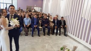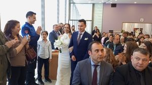 Nazilli ilçesi Zafer Mahallesi Şehit Mustafa Akdağ Parkı içerisinde bulunan Nazilli Belediyesi Yeni Nikah Salonu’nda düzenlenen nikah merasimine Kaymakam Huriye Küpeli Kan, eşi ve üçüz çocukları, Cumhuriyet Başsavcısı Murat Dilsiz, İlçe Jandarma Komutanı Yüzbaşı Ahmet Refik Özsoy, kurum müdürleri, çiftin aileleri ve yakınları katılım sağladılar.